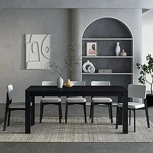 71-Inch Modern Farmhouse Rectangular Dining Table – Dining Room & Living Room Furniture, Effortless Assembly, Burnt Black