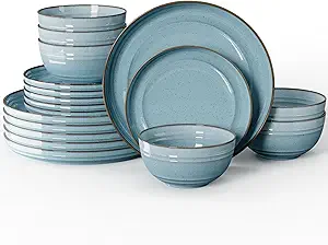 Plates and Bowls Set – Porcelain Dinnerware for 6, 18 pcs Handcrafted Glaze Embossed Dinner Set, Scratch-Resistant, Dishwasher/Oven/Microwave Safe Ceramic Dish Set, Gradient Blue