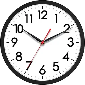 14-Inch Silent Non-Ticking Modern Wall Clock – Battery Operated Analog Clock for Office, Home, Bathroom, Kitchen, Bedroom, School, Living Room (Black)